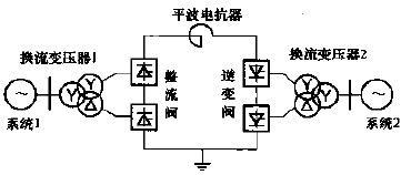 背靠背直流系統(tǒng)的整流站和逆變站的設(shè)備裝設(shè)在一個(gè)站內(nèi),也稱(chēng)背靠背換流站。在背靠背換流站內(nèi),整流器和逆變器的直流側(cè)通過(guò)平波電抗器相連,而其交流側(cè)則分別與各自的被聯(lián)電網(wǎng)相連,從而形成兩個(gè)交流電網(wǎng)的聯(lián)網(wǎng)。兩個(gè)被聯(lián)電網(wǎng)之間交換功率的大小和方向均由控制系統(tǒng)進(jìn)行快速方便的控制,為了降低換流站產(chǎn)生的諧波,通常選擇12脈動(dòng)換流器作為基本換流單元。