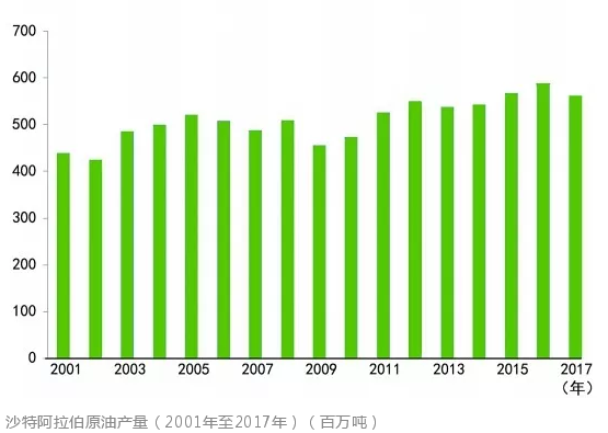 沙特阿拉伯原油產(chǎn)量(2001年至2017年)(百萬噸)