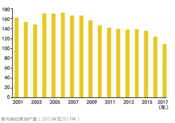 委內(nèi)瑞拉原油產(chǎn)量(2001年至2017年)