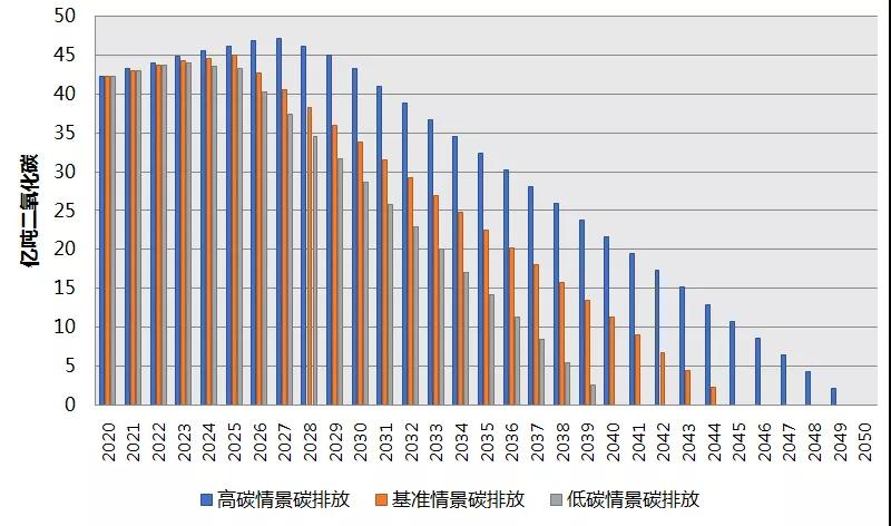 圖1 2020~2050年電力行業二氧化碳排放量