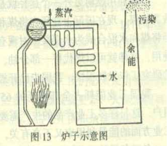燃料在爐里燃燒,產(chǎn)生高溫氣體,通過傳熱過程使水的溫度升高,成為高溫蒸汽,一部分能量則從煙囪排放出去。如果煙氣不加處理,就會(huì)造成污染,例如煤里有硫,硫燃燒生成二氧化硫,它碰上水成為酸雨,對(duì)農(nóng)作物、對(duì)人民健康都有很大壞處。還有氧化氮是可能致癌的物質(zhì),一氧化碳也有毒。即使是二氧化碳,如果在空氣中大量增加,地球溫度會(huì)升高,使生態(tài)失去平衡。要去掉污染,就要采取措施,要花代價(jià)。燒煤的發(fā)電廠,增加這種去污染設(shè)備要增加投資20%以上。污染最好在燃燒過程中就去掉,這樣就需要科學(xué)技術(shù)(例如采用流態(tài)化燃燒新技術(shù))了。