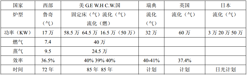 表4 燃煤聯(lián)合循環(huán)的發(fā)展情況