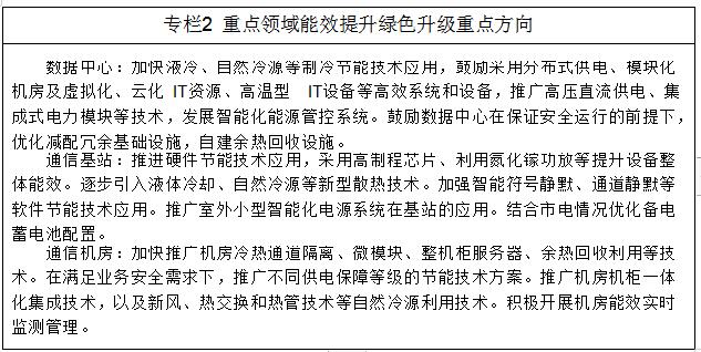 (二)推進(jìn)重點(diǎn)領(lǐng)域能效提升綠色升級。持續(xù)開展國家綠色數(shù)據(jù)中心建設(shè),發(fā)布名單及典型案例,加強(qiáng)綠色設(shè)計、運(yùn)維和能源計量審查。引導(dǎo)數(shù)據(jù)中心擴(kuò)大綠色能源利用比例,推動老舊數(shù)據(jù)中心實施系統(tǒng)節(jié)能改造。支持制造企業(yè)加強(qiáng)綠色設(shè)計,提高網(wǎng)絡(luò)設(shè)備等信息處理設(shè)備能效。推動低功耗芯片等產(chǎn)品和技術(shù)在移動通信網(wǎng)絡(luò)中的應(yīng)用,推動電源、空調(diào)等配套設(shè)施綠色化改造。到2025年,新建大型、超大型數(shù)據(jù)中心電能利用效率(PUE,指數(shù)據(jù)中心總耗電量與信息設(shè)備耗電量的比值)優(yōu)于1.3。