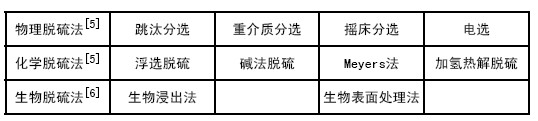 燃前控制技術包括物理、化學和生物選煤方法等,其中化學和生物選煤方法雖然可以同時脫出煤中的無機硫和有機硫,但由于生產工藝復雜、生產周期長和易產生二次污染等因素,短期內難以實現工業化。物理選煤方法包括重選、浮選等,只能脫出煤中的無機硫,目前已經得到了大規模的工業應用。