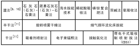 表3主要的燃后脫硫方法