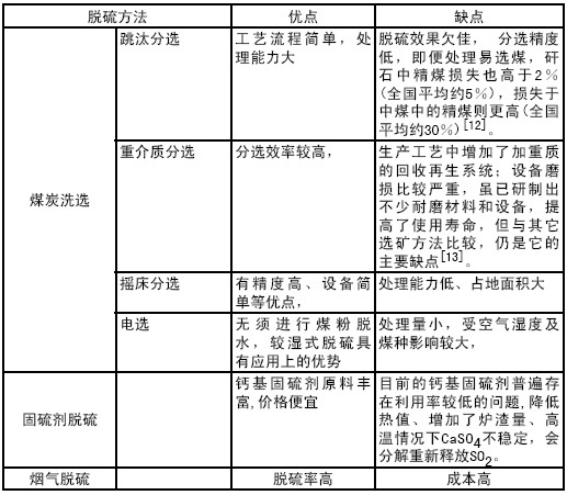 原煤的燃燒前脫硫是潔凈煤的源頭技術,既能脫硫又能除灰,同時還可以提高熱能利用效率,減少無效運輸,并且脫硫的費用較低,無二次污染。