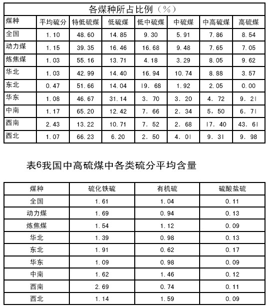 表5中國煤炭資源中全硫的分布表