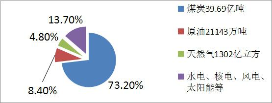 我國2014年能源生產總量為36億噸標煤,能源總消費量為42.6億噸標煤。