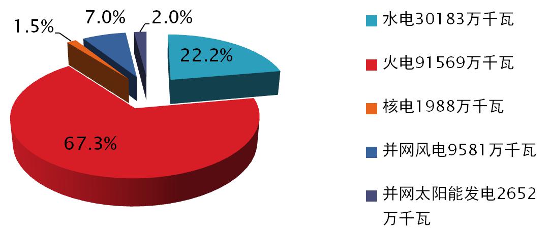 2014年我國電力裝機總容量為13.6億千瓦,全年發電總量為56495.8億千瓦時。