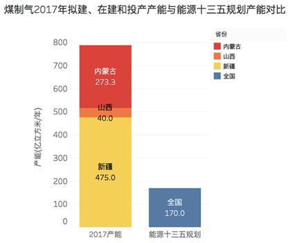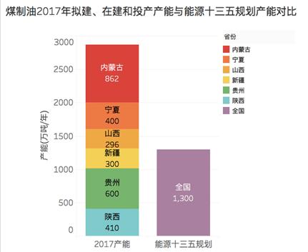 而根據(jù)綠色和平的統(tǒng)計,截至2017年1月,中國現(xiàn)投產(chǎn)的煤制油、煤制氣項目產(chǎn)能分別為818萬噸和51.05億立方米,加上在建和已經(jīng)拿到路條隨時可能開建的項目,符合“十三五”建設條件的地區(qū)煤制油、煤制氣產(chǎn)能總計達到了2868萬噸和788.3億立方米,遠遠超出了“十三五”規(guī)劃產(chǎn)能。