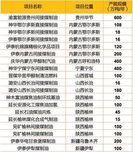 附:表1.符合十三五規(guī)劃的煤制油項目及產(chǎn)能明細(包括已投產(chǎn)的項目)