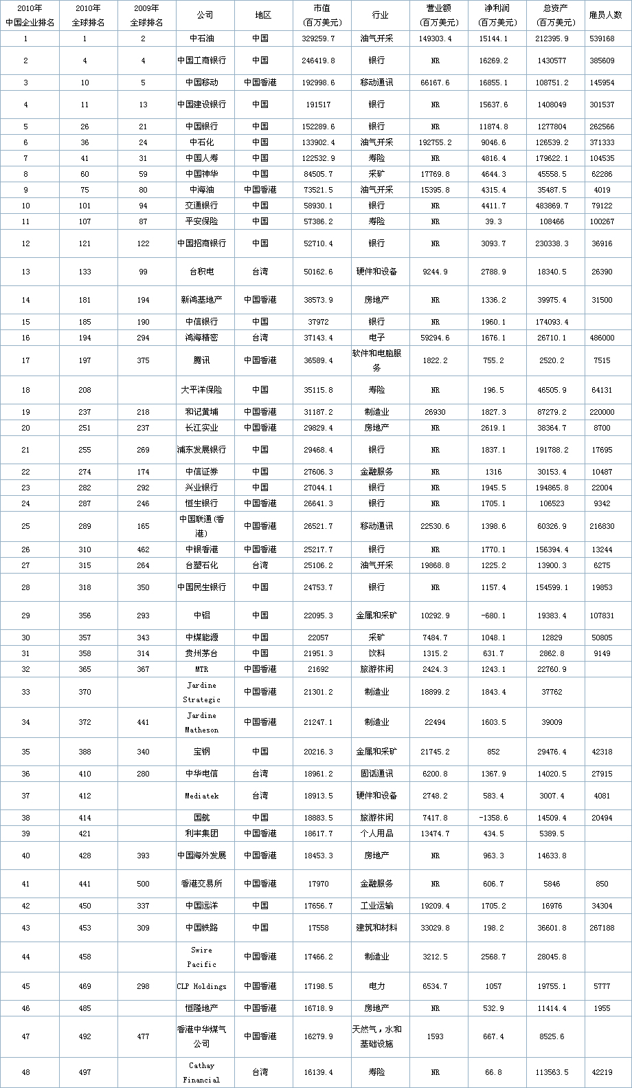《金融時報》的全球五百強(qiáng)是與財富五百強(qiáng)并稱的全球權(quán)威企業(yè)排名之一。在全球各大公司今年3月31日的股價基礎(chǔ)上制定了此排行榜。該排行榜每年公布一次,已經(jīng)連續(xù)公布了14期。