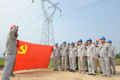6月29日,安徽淮南供電公司線路工區全體黨員在迎峰度夏工作中...