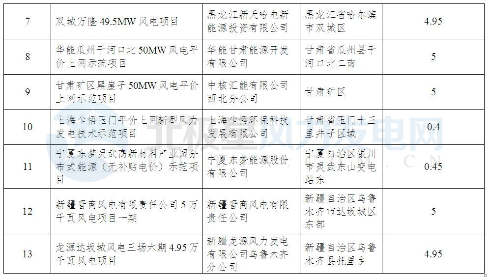 附件:風(fēng)電平價上網(wǎng)示范項目