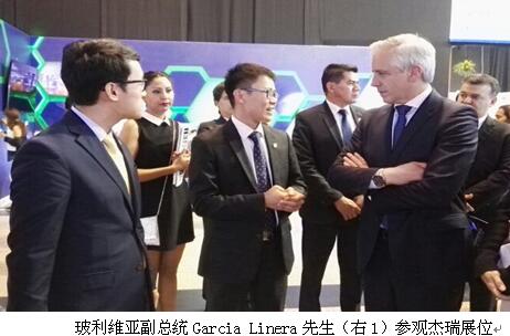 這次展會是杰瑞集團在玻利維亞展現自身綜合實力、掌握當地行業發展趨勢、樹立品牌形象、開發新客戶資源的重要契機。參展期間,玻利維亞副總統Garcia Linera先生蒞臨杰瑞展位,一同前來的還有玻利維亞能源部長、油氣協會主席等政府要員以及國有油氣企業負責人。在了解了杰瑞的產品種類、技術優勢、服務能力以及杰瑞在玻利維亞的業務開展情況后,Garcia Linera先生指出,玻利維亞與中國雙邊貿易關系日益密切,這很大程度上得益于包括杰瑞在內的中國企業在玻利維亞的投資拉動。他希望杰瑞能參與到玻利維亞的能源事業建設中來,為玻利維亞的油氣資源開發提供優質服務。