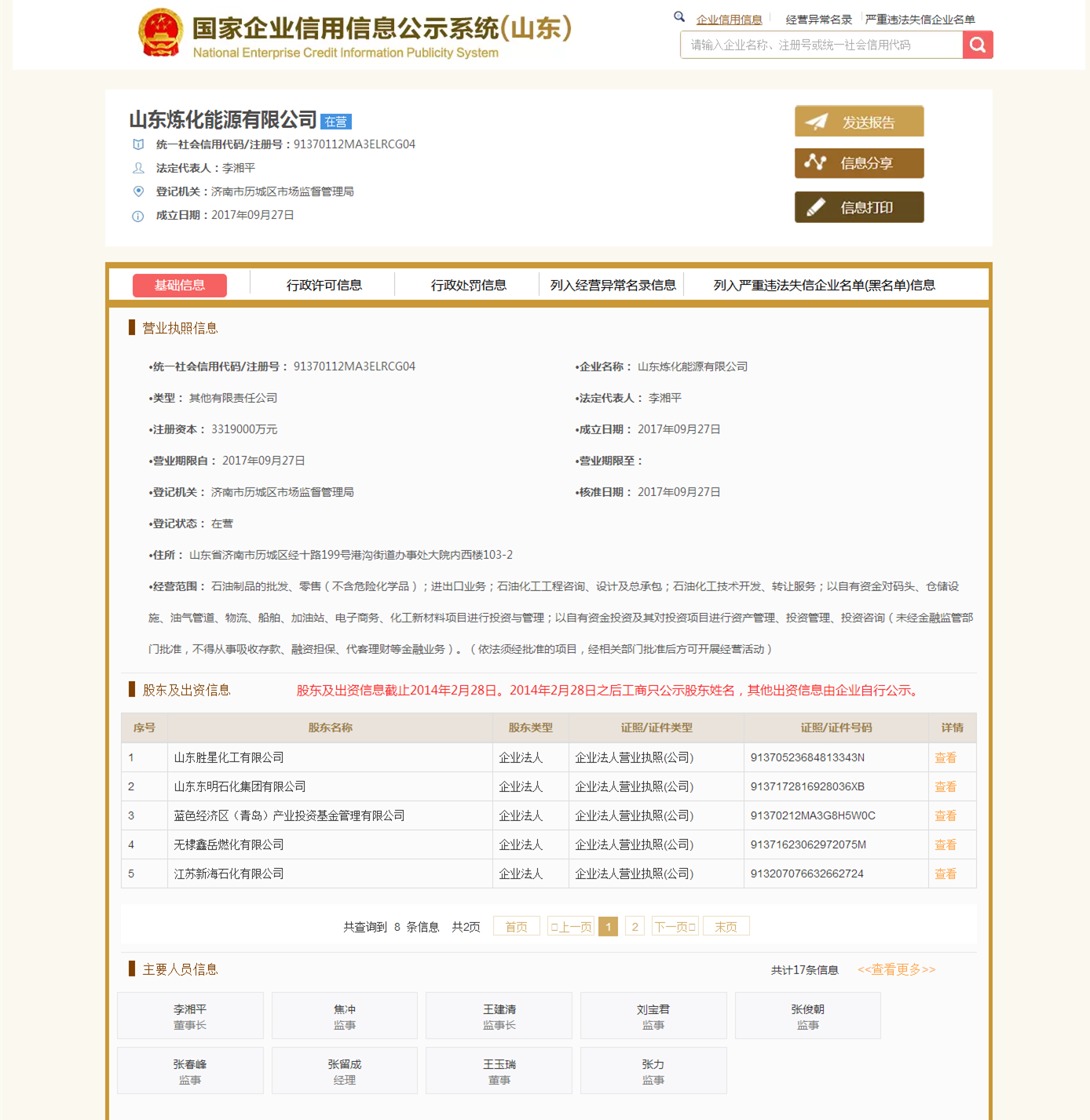 然而,上述質疑之聲尚未走遠,寥寥數日后,一度被市場遐想的山東“大煉化”注冊成立。