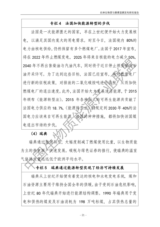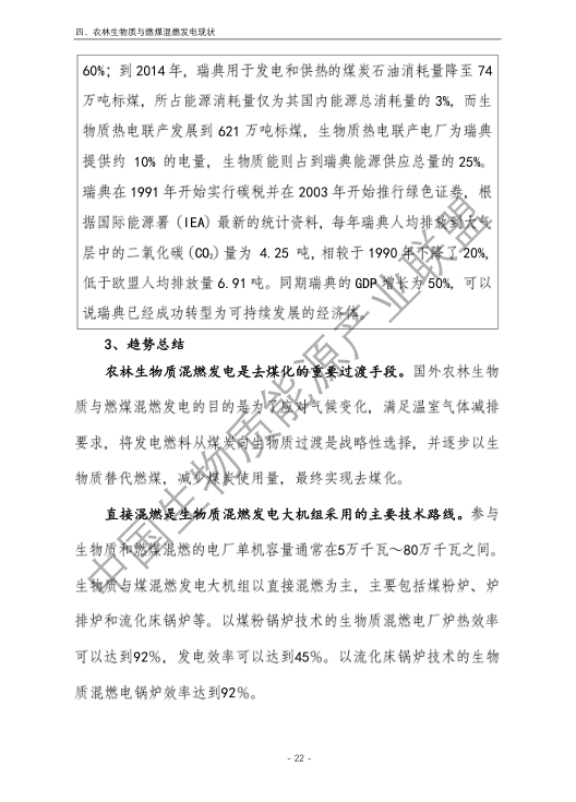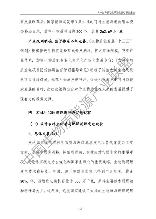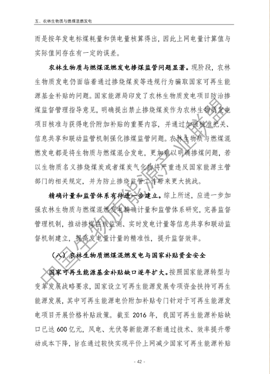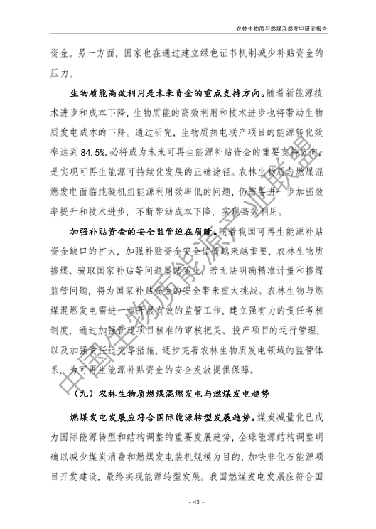 5.農(nóng)林生物質(zhì)與燃煤混燃發(fā)電存在技術挑戰(zhàn),難以保障可再生能源補貼安全。報告提出國外混燃發(fā)電主要目標為煤炭減量化及減排二氧化碳為主的溫室氣體,目前更多發(fā)展與天然氣混燃或者全部生物質(zhì)作為原料。我國農(nóng)林生物質(zhì)與燃煤混燃發(fā)電存在原料適應性差、能源利用效率低、無法解決秸稈露天焚燒、發(fā)電量計量監(jiān)測困難、無法發(fā)揮大規(guī)模替代燃煤作用等技術挑戰(zhàn)和問題,仍處于發(fā)展初步階段。需進一步開展有效的監(jiān)管工作,逐步完善農(nóng)林生物質(zhì)發(fā)電領域的監(jiān)管體系,為可再生能源補貼資金的安全發(fā)放提供保障。