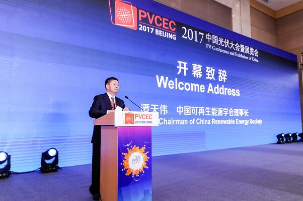 譚天偉:尊敬的各位領導、各位代表,女士們,先生們,大家好,很高興今天能參加2017年中國光伏大會暨展覽會,大會經歷三年,已經成為我國乃至全球太陽能光伏產業合作交流的主要平臺,這與國家的支持和在座的各位努力是分不開的,首先請允許我代表中國可再生能源學會向大會的召開表示最熱烈的祝賀。