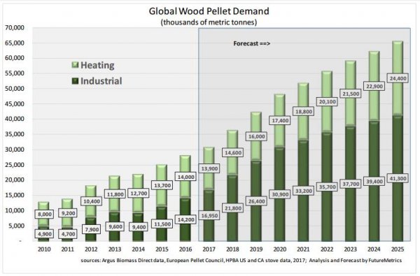 預(yù)計(jì)2019年以后大部分木屑顆粒的需求增長(zhǎng)將來(lái)自日本和韓國(guó)。