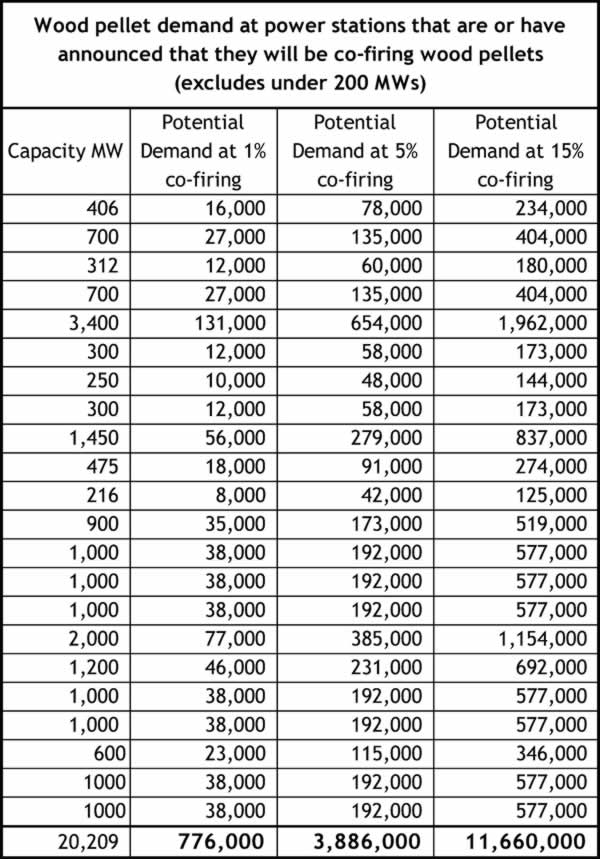 圖表顯示了估計(jì)達(dá)到最低效率要求所需的估計(jì)木屑顆粒數(shù)量。如果沒(méi)有其他原因,繼續(xù)運(yùn)行的超臨界和亞臨界發(fā)電廠將不得不使用顆粒燃料來(lái)滿(mǎn)足這一要求。