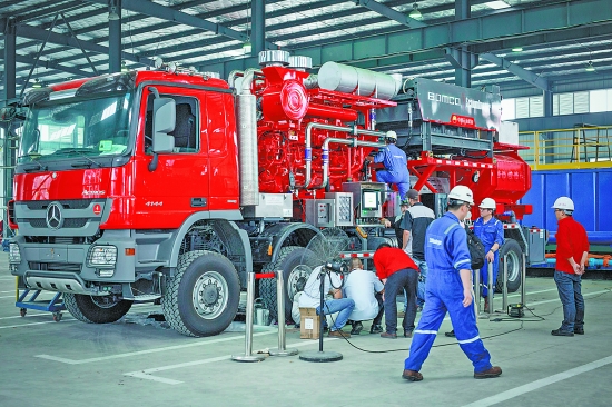 寶石機械公司成都分公司專用車公司2300型壓裂車生產現場。通訊員陳立希攝