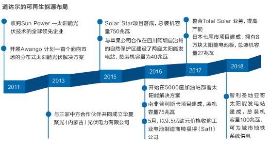 2011年6月,道達爾以14億美元收購了世界排名第二的太陽能發電企業SunPower60%的股份,成為迄今石油和天然氣公司在再生能源行業的最大一筆收購交易。