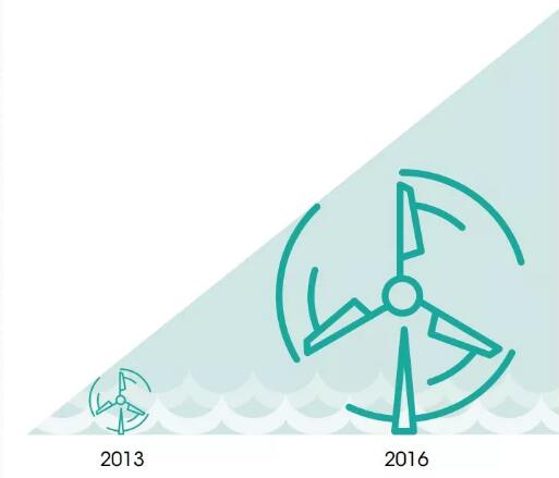 (2)離岸風電投資穩步上升,2013—2016年增長4倍,并有望進一步增長。