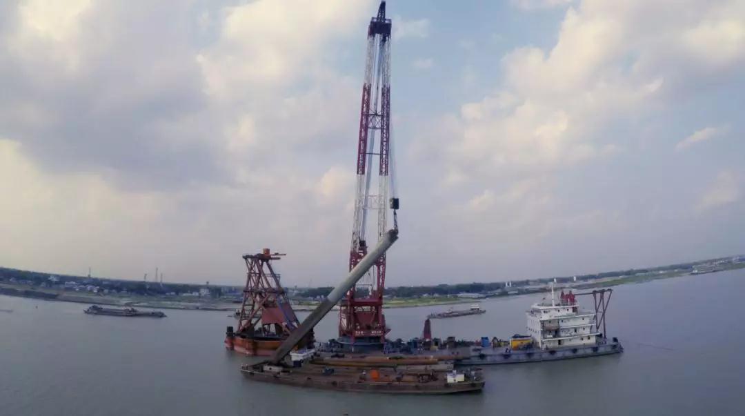 孟加拉國(guó)屬于典型的沖積帶,帕德瑪河床下110米的地方,依然是疏松的沙層。在這里建設(shè)大橋,橋墩的主體結(jié)構(gòu)——鋼樁,至少要達(dá)到120米的長(zhǎng)度,才能確保大橋穩(wěn)如泰山。120米的鋼樁,重達(dá)550噸,世界上沒(méi)有任何起重設(shè)備可以完成如此之長(zhǎng)的鋼結(jié)構(gòu)豎直吊裝。中國(guó)工程師拿出了一個(gè)讓世界瞠目的方案,把120米的鋼樁分成兩節(jié),在施工現(xiàn)場(chǎng)進(jìn)行組合安裝。