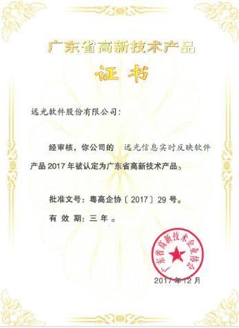 日前,廣東省科技廳公布了2017年高新技術產品認定結果,遠光軟件大數據事業部產品“信息實時反映信息系統”(英文名:Realinsight)榮獲2017年廣東省高新技術產品稱號。
