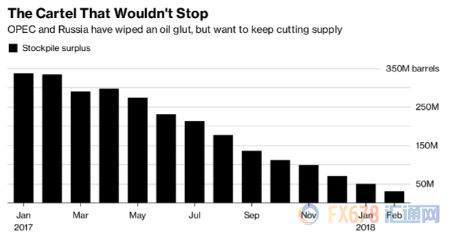 如下圖所示,石油過剩的情況已經(jīng)有所緩解