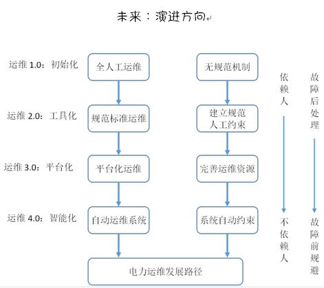 這個階段是運(yùn)維業(yè)務(wù)基本穩(wěn)定,但跨資源整合及協(xié)調(diào)溝通成為瓶頸,在涉及到需"設(shè)備原廠、節(jié)能方案廠家、供電局以及緊急送電物資"等非已有的資源協(xié)調(diào)和籌備時,運(yùn)維業(yè)務(wù)就迫切需要一個平臺(未必指產(chǎn)品)來滿足這方面的資源調(diào)配,最終打造運(yùn)維平臺一體化。