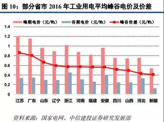 事實上,在政策之前,部分市場也具備了儲能的商業模式,如峰谷價差較多的城市。據不完全統計,全國34個省份中,共有16個省份發布了峰谷電價表,包括北京、上海、天津、河北、廣東、江蘇、浙江、山西等。據業內人士測算,若峰谷價差超過0.8元,儲能光伏電站的盈利模式可觀,特別是用電量大的工商業企業。