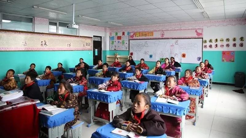 青海瑪多縣民族寄宿中學的學生在認真聽課。白強 攝