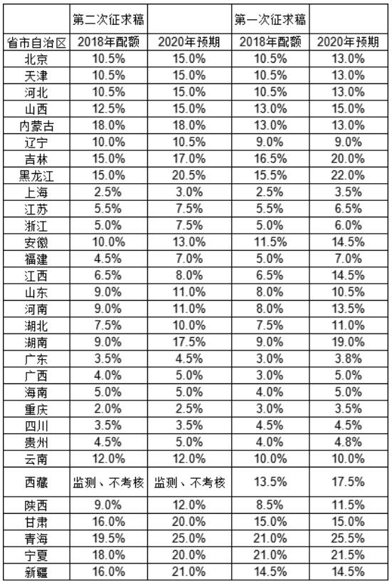 附:可再生能源電力總量配額指標(biāo)對比圖表