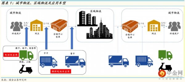 我們認(rèn)為燃料電池物流車主要是替代燃油中卡和重卡應(yīng)用于城市支干線和城際運(yùn)輸主要有幾點(diǎn)原因: