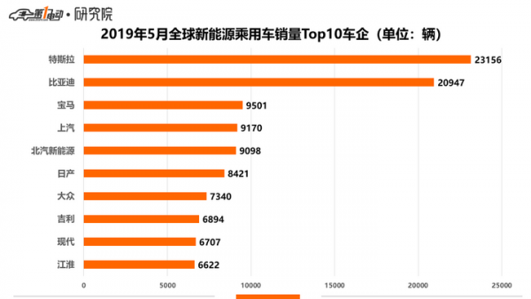 特斯拉Model 3依然傲冠群雄,5月當月和2019年1-5月累計銷量排名均遙遙領先。