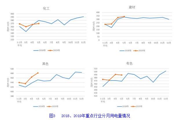 三、四大高載能行業用電同比增長,化工行業用電當月負增長