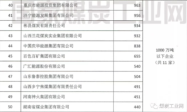 為深入貫徹落實習近平總書記關(guān)于能源安全新戰(zhàn)略的重要論述,推動現(xiàn)代化煤炭經(jīng)濟體系建設,促進煤炭工業(yè)高質(zhì)量發(fā)展,發(fā)揮骨干企業(yè)帶頭示范作用,提高行業(yè)凝聚力和社會影響力,中國煤炭工業(yè)協(xié)會參照國際通行做法,通過企業(yè)自主申報與協(xié)會統(tǒng)計指標數(shù)據(jù)相結(jié)合的方式,按2018年度煤炭產(chǎn)量為標準排出了2019中國煤炭企業(yè)煤炭產(chǎn)量50強,現(xiàn)予以發(fā)布。