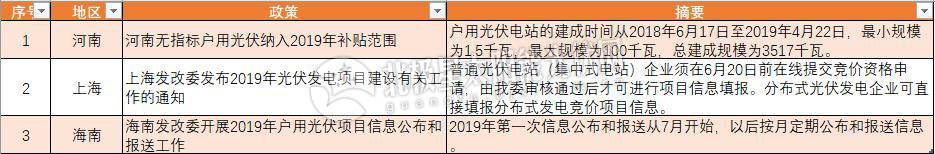 “沉睡多時(shí)”的戶用光伏市場,7月逐漸回暖。河北、河南分別調(diào)整了戶用光伏補(bǔ)貼范圍及明確了戶用光伏納入2019年補(bǔ)貼范圍,而海南戶用光伏市場明確了報(bào)送流程及報(bào)送時(shí)間。同時(shí),上海地區(qū)戶用光伏項(xiàng)目也在緊鑼密鼓的籌備中。