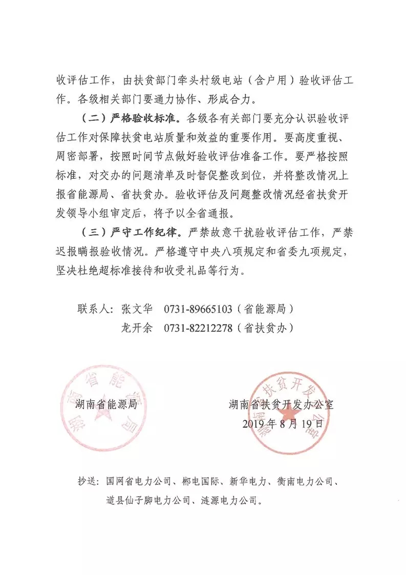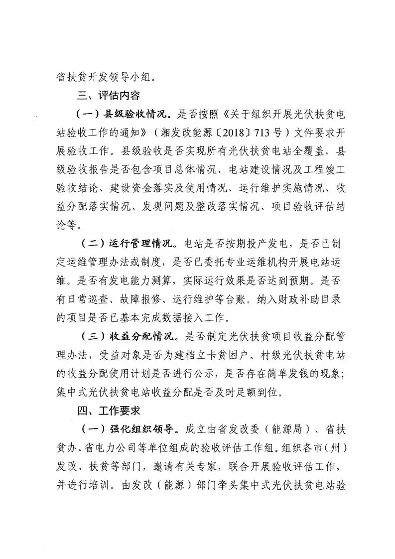 據(jù)文件要求:9月16日-9月30日,對株洲市、湘潭市、衡陽市、岳陽市、益陽市、婁底市、張家界市、湘西州等8個(gè)市(州)的光伏扶貧電站進(jìn)行驗(yàn)收;10月10日-10月25日,對長沙市、邵陽市、常德市、郴州市、永州市、懷化市等6個(gè)市的光伏扶貧電站進(jìn)行驗(yàn)收;10月-11月,問題整改到位;12月,完成驗(yàn)收評估。詳細(xì)情況請見原文。