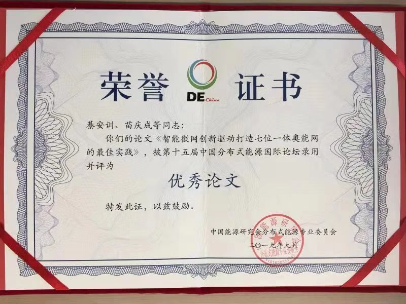 本刊訊(通訊員李汝來石小磊)9月5日-6日,以“多元化布局與產業鏈延伸”為主題的第十五屆中國分布式能源國際論壇在北京召開,奧德國際商務中心七位一體智慧能源示范項目榮獲2019年度中國分布式能源優秀項目特等獎,《智能微網創新驅動打造七位一體奧能網的最佳實踐》獲得優秀論文獎,奧德圣凱正義紡織產業園智慧能源項目榮獲2019年度中國分布式能源優秀項目優秀獎,山東奧德圣凱能源有限公司副總經理王學軍被評選為“中國分布式能源優秀人物”。奧德新能源產業集團總經理綦安訓作《開啟智慧能源定制化新時代》主旨演講。