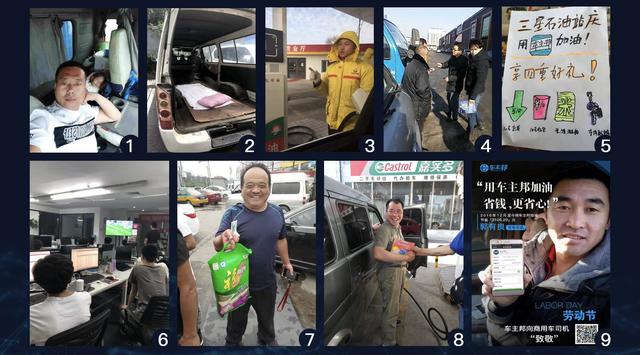 圖9:這張照片中的主人公,名叫郭有良,他是一名快狗打車的司機。"也是車主邦創(chuàng)業(yè)早期,我們團隊某次去做地推工作時,碰到了這位郭大哥。我們的合伙人孫總說'你試試車主邦',大哥說我用過。當時孫總非常'較真',與大哥確認說:'你確定用的是車主邦嗎?你拿出手機我看看?'沒想到,那位大哥真就拿出了他的手機,并打開了車主邦官微,向?qū)O總展示了這一幕。當時,我們團隊就抓拍下了這張照片,并把這張照片發(fā)到車主邦的工作群里。我們的創(chuàng)始人戴震感動的熱淚盈眶……2018年勞動節(jié)時,我們又聯(lián)系到了這位司機大哥,與其商量后,我們就請了這位大哥做我們的司機代言人。"王陽津津有味地分享著。