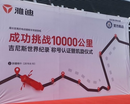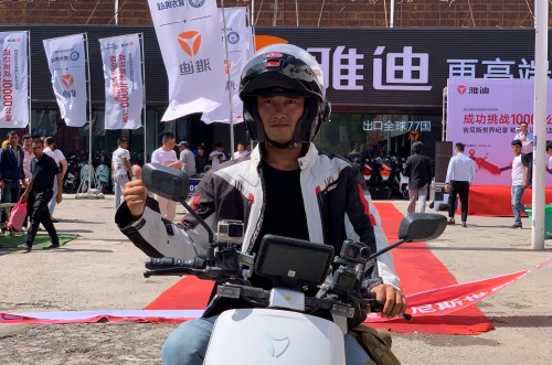 9月10日,宋健騎乘雅迪G5到達(dá)新疆喀什,參加“成功挑戰(zhàn)10000公里吉尼斯世界紀(jì)錄稱號(hào)認(rèn)證暨凱旋儀式”,這也標(biāo)志著宋健及雅迪G5挑戰(zhàn)“最長距離的電動(dòng)踏板車駕駛旅程”的吉尼斯世界紀(jì)錄成功!宋健表示:“這是一趟十分難忘的旅程,路上遇到過很多復(fù)雜的路況,甚至還遇到了危險(xiǎn),多虧雅迪G5性能夠好,才能順利地完成這段旅程。”