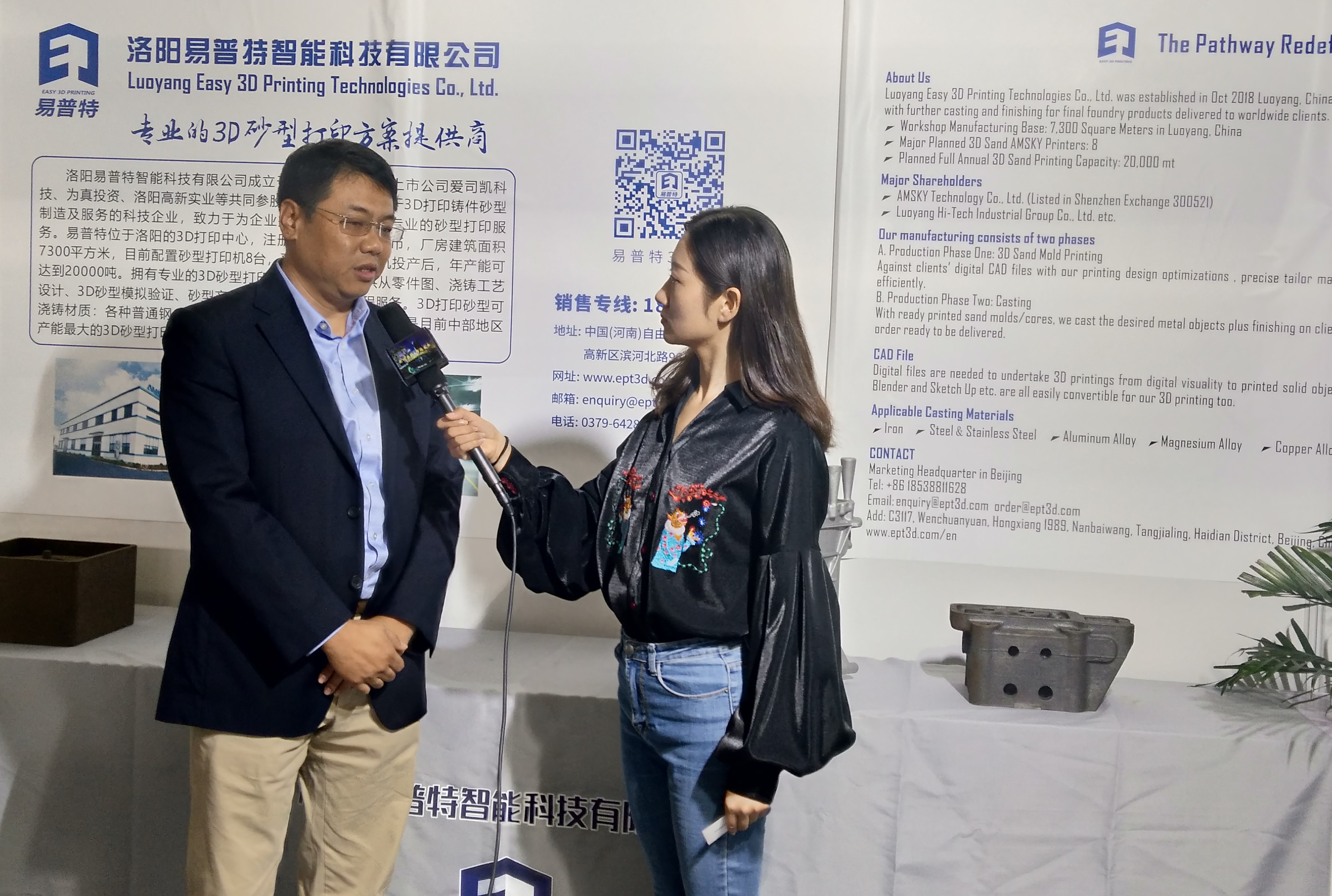 2019年10月30日,第十五屆CSFE上海國際鑄造展在上海新國際博覽中心拉開帷幕。洛陽易普特智能科技有限公司打造中部地區(qū)最大的3D砂型打印中心,攜3DP技術(shù)打印砂型亮相CSFE,助力鑄造行業(yè)智能、綠色、高效發(fā)展。