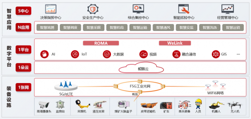 此次發布的華為智能礦山聯合解決方案,不僅引入了行業領先的5G、AI、鯤鵬云等新ICT技術,還融合了煤炭行業內智能礦山建設豐富專業的實踐經驗,形成了“3個1 + N + 5”的智能礦山整體架構,即礦山一張網、礦山一朵云、礦山一平臺、以及N個應用與5個中心。