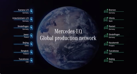 此外,奔馳還公布了電池工廠的全球地圖,分布于德國、中國、波蘭、美國、泰國。這些電池工廠將為上述提到的六款純電車型,以及各種插電混動和48V微混車型生產電池組。
