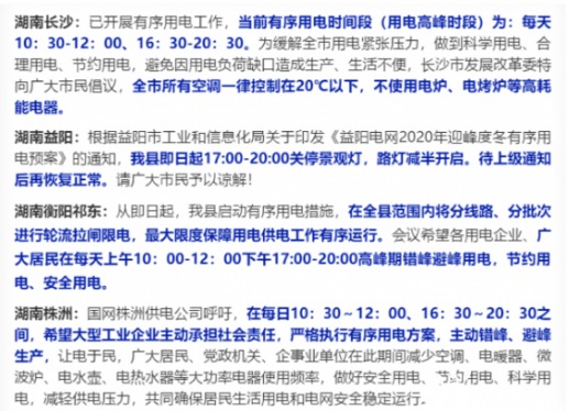 據長沙市發改委官網消息,湖南省發改委要求,12月8日起,全省啟動限電措施。要求全市7000余家大工業和一般工商業企業需錯峰生產、避峰讓電,限制高能耗、高排放等等工業用電。