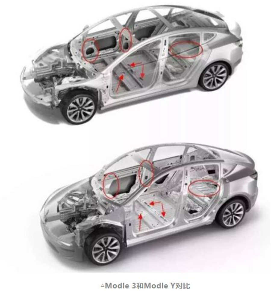 而且Model Y的零件不但可以享受規(guī)模效應(yīng),還將能用上大批新的降成本技術(shù)。舉個例子,Model Y有一項新專利是關(guān)于一體沖壓成型車身的工藝,將過去單個零部件沖壓再拼裝的過程一步到位,這會顯著的降低生產(chǎn)成本。
