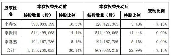 隆基股份的權益變動公告顯示,本次交易將使得李春安對隆基股份的持股比例由原來的10.55% 降為3.4%。在公告中,李春安稱,"擬在未來12個月繼續通過上海證券交易所集中競價和大宗交易系統減持隆基股份的持股。"