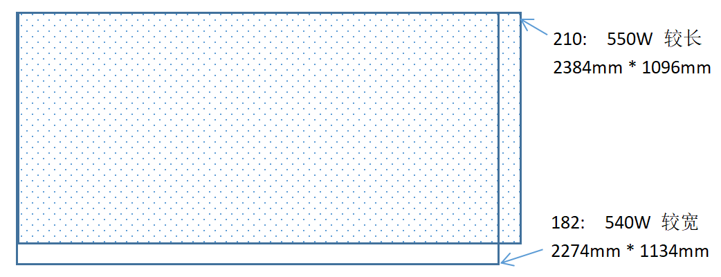 圖2. 東方日升210 - 550W和晶科182 - 540W組件尺寸對比